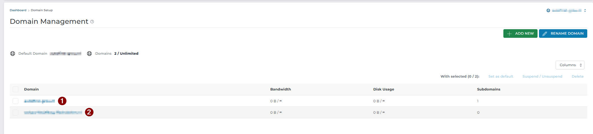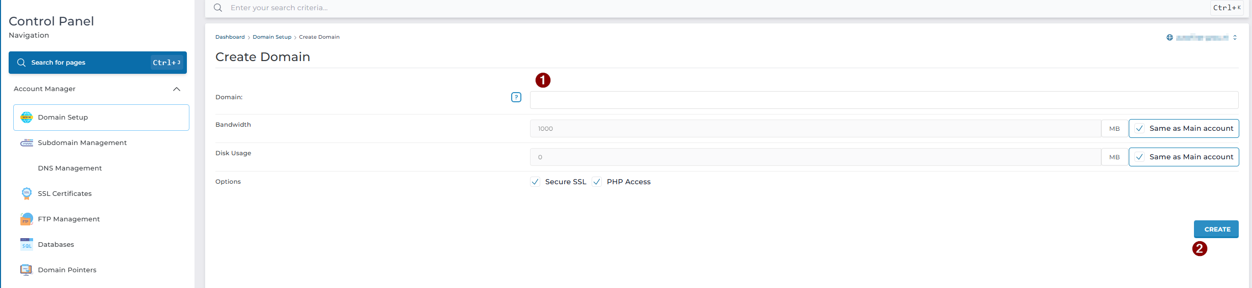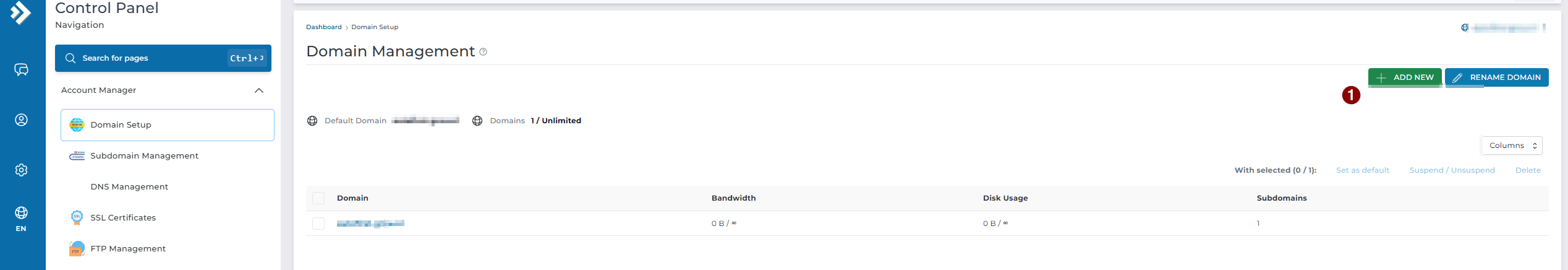 Login in DirectAdmin, en kies aan de linkerkant voor "Domein Setup" en daarna voor "+Add New"